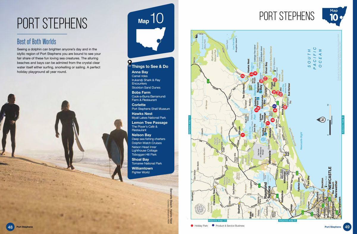 Port Stephens Map 10 River Hunter River Hunter River Myall Riv er Williams River Karuah ROAD BRUSH MUNGO RD PASSAGE TREE LEMON ROAD NEWLINE ROAD SEAHAM EAST ROAD BAY SWAN ROAD CREEK LIMEBURNERS WAY MYALL RD BAY NELSON ROAD BAY NELSON ROAD TREE CABBAGE RD SEAHAM ROAD RICHARDSON ROAD TAREAN WAY BUCKETTS THE ROAD MEDOWIE HWY PACIFIC HWY PACIFIC HWY PACIFIC ROAD TOWN CLARENCE A1 A1 A43 A43 A1 A37 A15 A43 B63 B63 Port Stephens Newcastle Bight Providence Bay Anna Bay Little Swan Bay Coal Shaft Bay Tanilba Bay Big Swan Bay Warners Bay SOU T H P ACI F I C OCE A N Boolambayte Lake Brasswater Bombah Broadwater Grahamstown Lake Bundabah Creek Duckenfield Hexham Glen William Taylors Beach Osterley Nerong Twelve Mile Creek Allworth Glen Martin Bundabah Oyster Cove Fishermans Bay One Mile Glen Oak Sandgate Bobs Farm Millers Forest Eagleton Swan Bay Tomago Limeburners Creek Nelsons Plains Pindimar East Seaham Brookfield North Arm Cove Winda Woppa Williamtown Boat Harbour Heatherbrae Mallabula Fullerton Cove Brandy Hill Lambton Broadmeadow Fern Bay Stockton Shoal Bay Bar Beach Soldiers Point Salamander Bay Tea Gardens Clarence Town Karuah Tanilba Bay Salt Ash Hawks Nest Anna Bay Seaham Waratah Fingal Bay Wickham Lemon Tree Passage Medowie Mayfield Adamstown Corlette Nelson Bay Charlestown Merewether Raymond Terrace NEWCASTLE Broughton Island Cabbage Tree Island Boondelbah Island Corrie Island Stony Point Dark Point Yacaaba Head Tomaree Head Carcair Point Fame Point Fingal Head Morna Point Point Stephens Stony Point Ferodale Point Boondelbah Nature Reserve Columbey National Park Gir-um-bit National Park Hunter Wetlands National Park John Gould Nature Reserve Karuah National Park Medowie State Conservation Area Myall Lakes National Park Shark Island Nature Reserve Tilligerry National Park Tomaree National Park Wallaroo National Park Worimi National Park Worimi Regional Park Salt Ash Air Weapons Range RAAF Base Williamtown Newcastle Airport Mt Torrance Wallaroo Mountain Mt Seaham Scobies Mountain Little Mountain Mt Kanwary Ironstone Mountain Mt George Mt Gillmore Kilometres 0 5 10 1 2 3 4 6 5 7 8 9 10 11 13 12 15 14 16 1 Base map and data © Custom Mapping Ser vices 2021 Produced for the Caravan & Camping Industr y Association NSW. Adjoins map 11 Adjoins map 8 Adjoins map 11 Adjoins map 9 Holiday Park Product & Service Business Port Stephens 49 Port Stephens