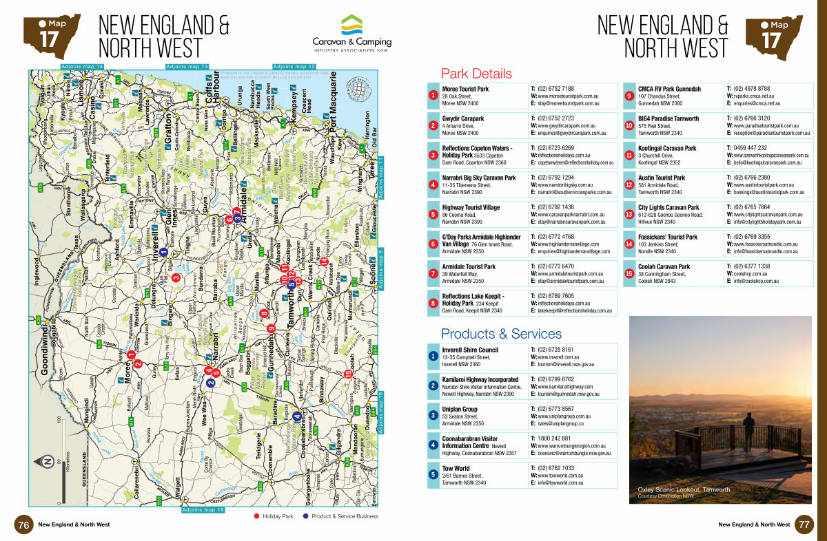 Queensland QUEENSLAND QUEENSLAND R A N G E G R E A T D I V I D I N G B76 B91 A1 A1 A1 A1 A1 B76 B76 B60 B62 B78 B56 B55 B55 B55 B55 A39 A39 A39 A39 A39 A39 A15 A15 A15 A15 A15 B56 B95 B51 B51 B84 B84 Limestone Caves Willi Willi Caves Euglah Cave Timor Caves Dungeon Cave Thunderbolts Cave Tannawanda Caves Lake Goran Lake Keepit Pindari Lake Lake Copeton Split Rock Reservoir Mallanganee Jacks Creek Graman Baan Baa Armatree Curban Dundee Kentucky Croppa Creek Ben Lomond Edgeroi Pine Ridge Llangothlin Shannon Vale Come By Chance Liston Upper Horton Balladoran Mallowa Kelvin Bukkulla Merah North Legume Emerald Hill Ebor Bullarah Mullaley Rowena Yarrowyck Tambar Springs Ettrick Gin Gin Balala Hanging Rock Jennings Aberfoyle Yarrowitch Blackville Nullamanna Niangala Purlewaugh Coolatai Bonshaw Nowendoc Red Range Boomi Breeza Collie Upper Manilla Hernani Gwabegar Glencoe Bugaldie Stonehenge Parraweena Timor Rookhurst Cobark Yarras Oakwood Leadville Wollomombi Merrygoen Terry Hie Hie Kingstown Gurley Gravesend Cassilis Garah Black Mountain Burren Junction Caroona Pilliga Urbenville Ulamambri Eumungerie Willow Tree Drake Tooraweenah Gum Flat Spring Ridge North Star Burroway Bendemeer Bellata Tabulam Ashley Nundle Wallabadah Yetman Carroll Pallamallawa Bonalbo Wingen Bellbrook Nymboida Somerton Woodenbong Dungowan Elsmore Deepwater Woolomin Nindigully Gilgai Attunga Ashford Baradine Moonbi Mungindi Boggabilla Duri Gulargambone Mendooran Binnaway Emmaville Loomberah Delungra Curlewis Collarenebri Bundarra Tingha Ellerston Tyalgum Kootingal Texas Inglewood Wallangarra Walgett Coolah Coonabarabran Quirindi Teridgerie Walcha Coonamble Dunedoo Boggabri Tenterfield Bingara Guyra Werris Creek Wee Waa Uralla Warialda Manilla Gilgandra Barraba Murrurundi Old Bar Gloucester South West Rocks Kew Crescent Head Macksville Nana Glen Lawrence Maclean Urunga Bellingen Coutts Crossing Corindi Beach Nimbin Lillian Rock Harrington Dorrigo Kyogle Coraki Stanthorpe Narrabri Glen Innes Moree Gunnedah Scone Wingham Nambucca Heads Wauchope Inverell Taree Kempsey Grafton Goondiwindi Armidale Port Macquarie Coffs Harbour Casino Lismore W illo w tree R ange N ande war R ange To w n s h en d Ran g e L i v e r p o o l R a n g e Kingstown Knob Mt Neville Oven Mountain Mt Myra Square Top Willala Mountain Harrison Plain Kilometres 0 50 100 River Gwydir Namoi River Mac Leay River Aberfo yle River Dumaresq River Castlerea gh River Castlereagh River Mehi River Clarence River Barwon River MacIntyre River Boomi River Cottan-Bimbang National Park Dthinna Dthinnawan National Park Gibraltar Range NP Goonoo SCA Guy Fawkes River National Park Mount Kaputar National Park New England National Park Nymboida NP Oxley Wild Rivers National Park Pilliga Nature Reserve Torrington SCA Warrumbungle National Park Washpool National Park Werrikimbe NP Willi Willi National Park WAY CLARENCE ROAD CARRIGAN ROAD GAP KILLARNEY ROAD RANGARI ROAD HUNTER WAY THUNDE R BOLTS ROAD PILLIGA WAY STUMP BLACK HWY CAS TLEREAGH HWY NEWELL HWY OXLEY HWY GWYDIR WAY BRUXNER HWY CARNARVON HWY NEWELL HWY GWYDIR HWY PA CIFIC HWY NEWELL HWY PACIFIC HWY BRUXNER HWY PACIFIC HWY ENGLAND NEW HWY OXLEY HWY KAMILAROI HWY GWYDIR HWY GO L D EN HWY OXLEY HWY ENGLAND NEW HWY KAMILAROI HWY CUNNINGHAM 2 1 3 4 5 6 7 8 9 13 11 12 14 15 4 5 3 2 1 Produced for the Caravan & Camping Industry Association NSW. Base map and data © Custom Mapping Services 2021 10 Tamworth Adjoins map 13 Adjoins map 12 Adjoins map 19 Adjoins map 11 Adjoins map 9 Adjoins map 14 Adjoins map 16 Holiday Park Product & Service Business New England & North West Map 17 New England & North West 76
